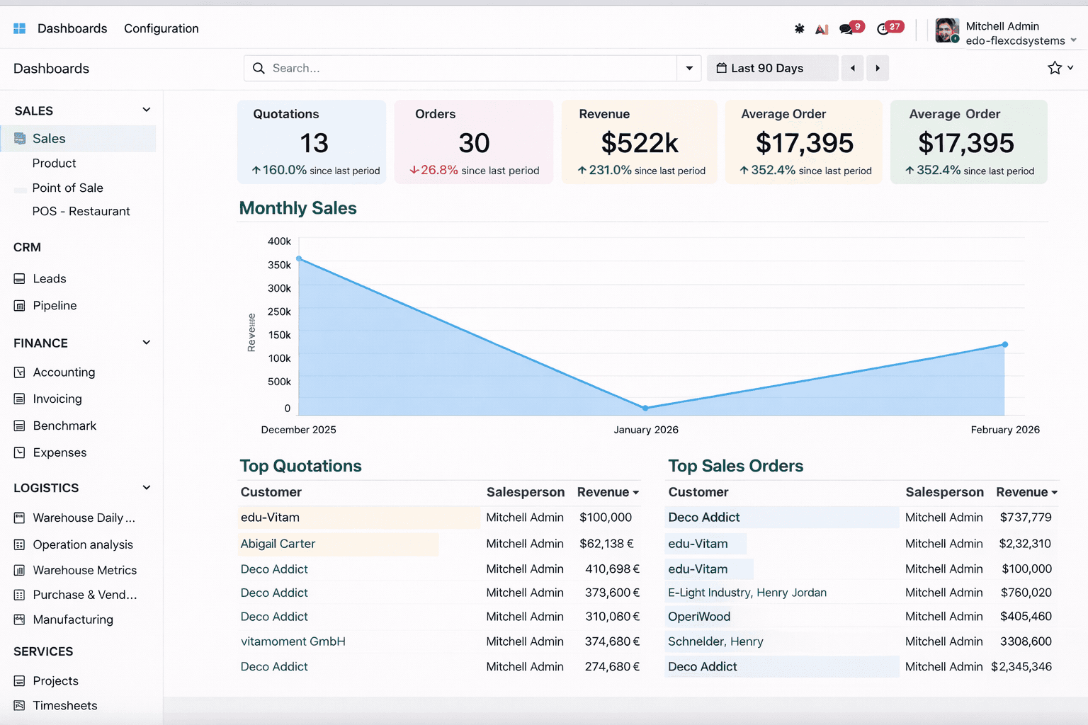 If your company is growing, processes are becoming more complex, or data is spread across multiple tools, an ERP system can significantly improve efficiency and transparency. Odoo centralizes sales, accounting, inventory, CRM, and operations into one integrated platform — giving you full control and real-time visibility.